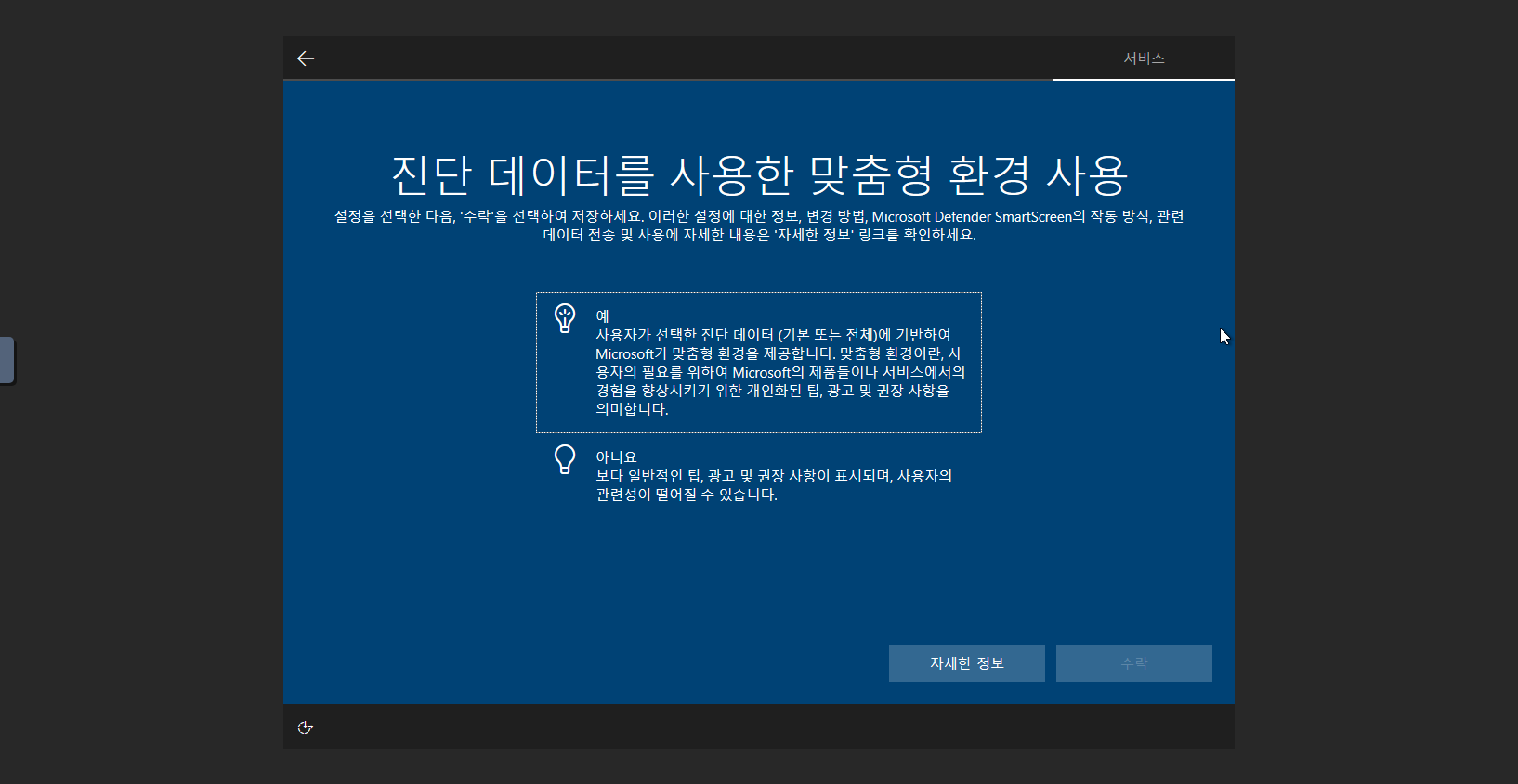 Windows 10 OS 설치 완료 설정 Windows 설정 진행 절차 입니다.