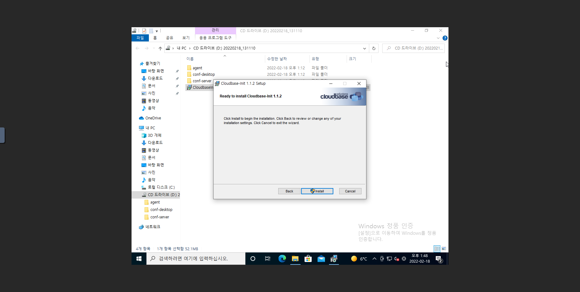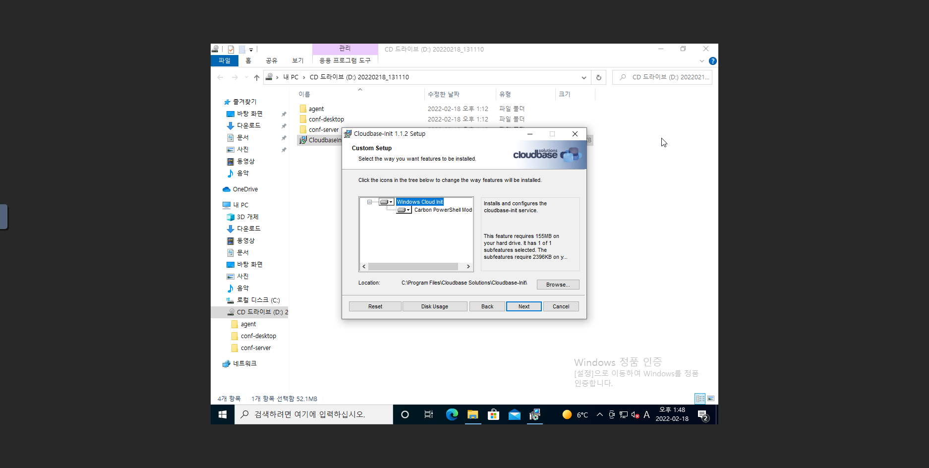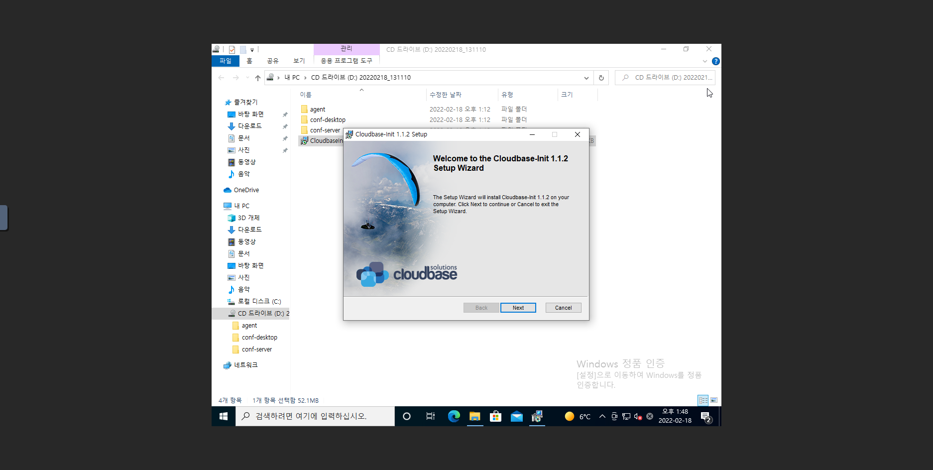 2. D: 에 있는 설치파일 CloudbaseInitSetup_1_1_2_x64 파일을 더블 클릭하여 Cloudbase-Init 을 설치 진행합니다.