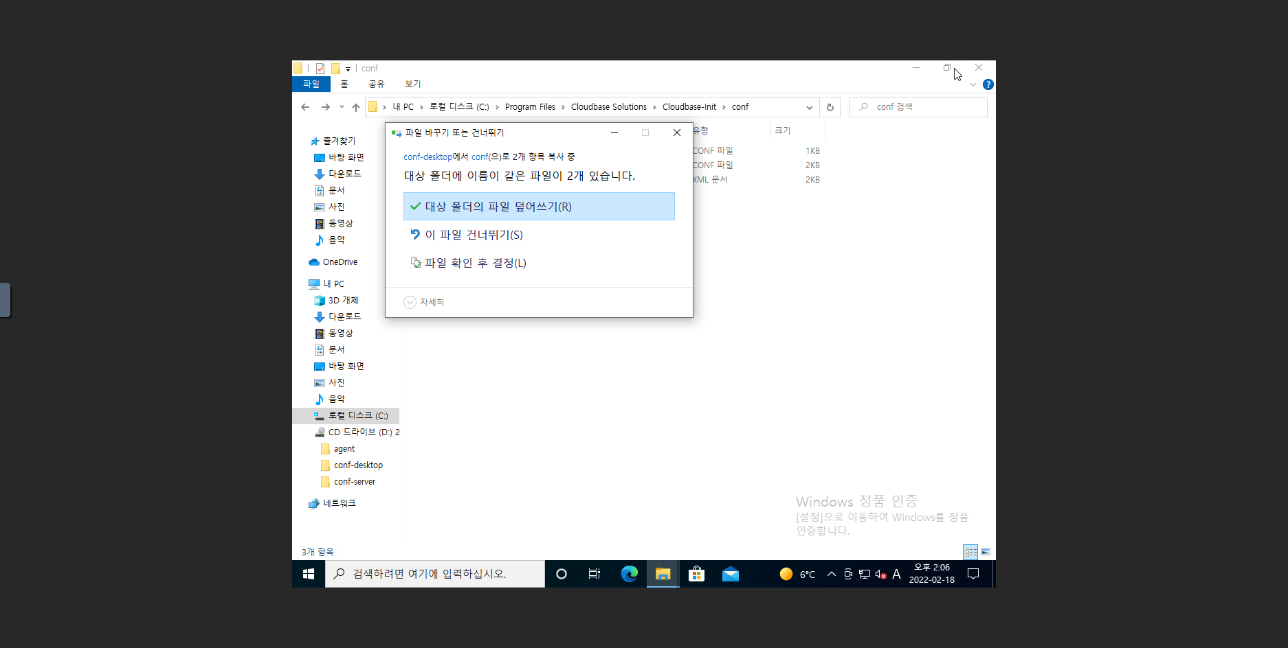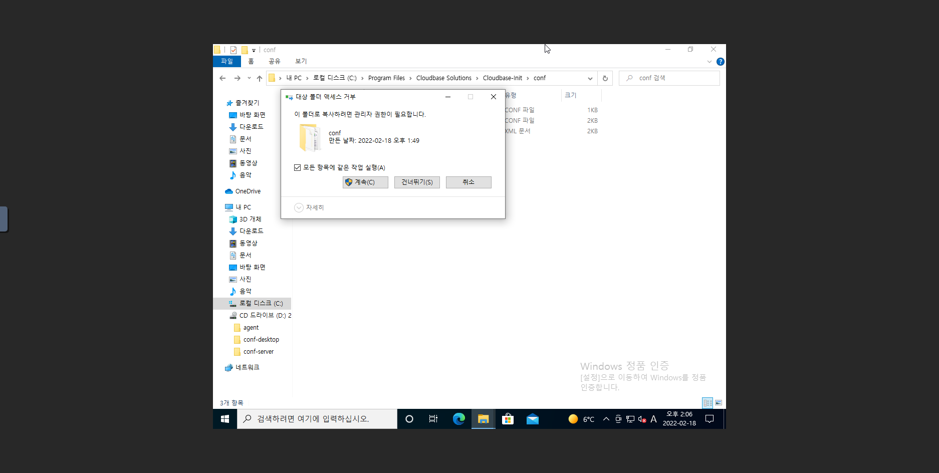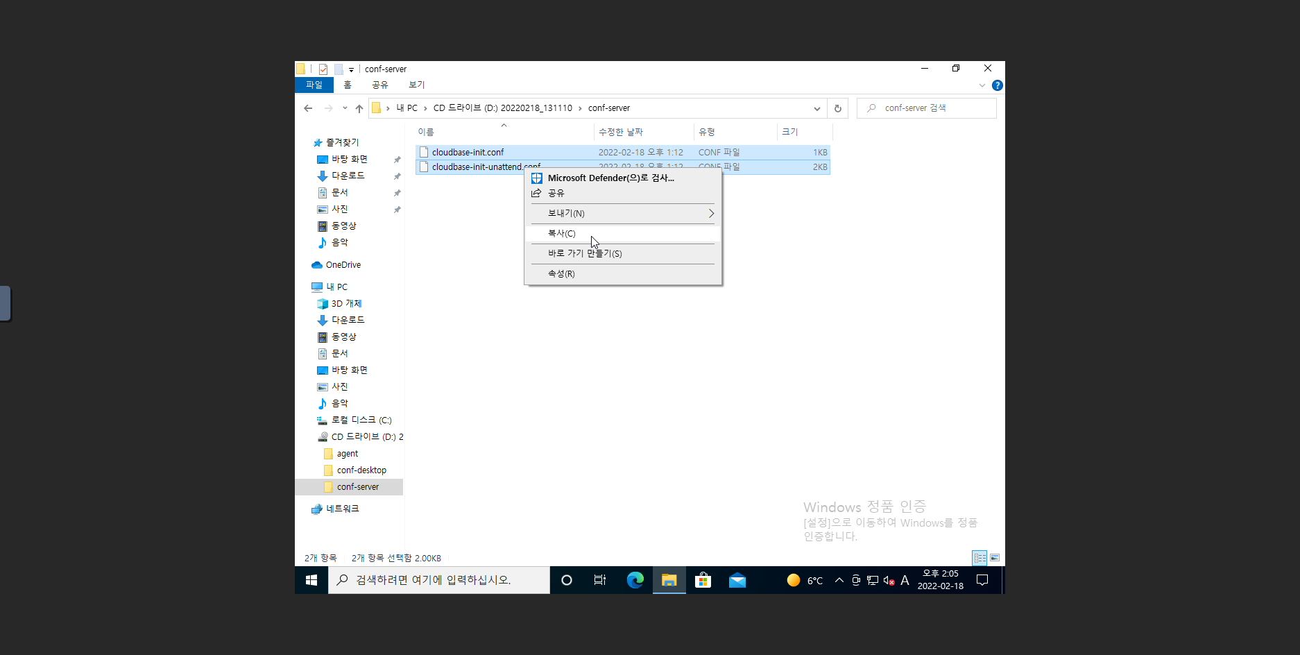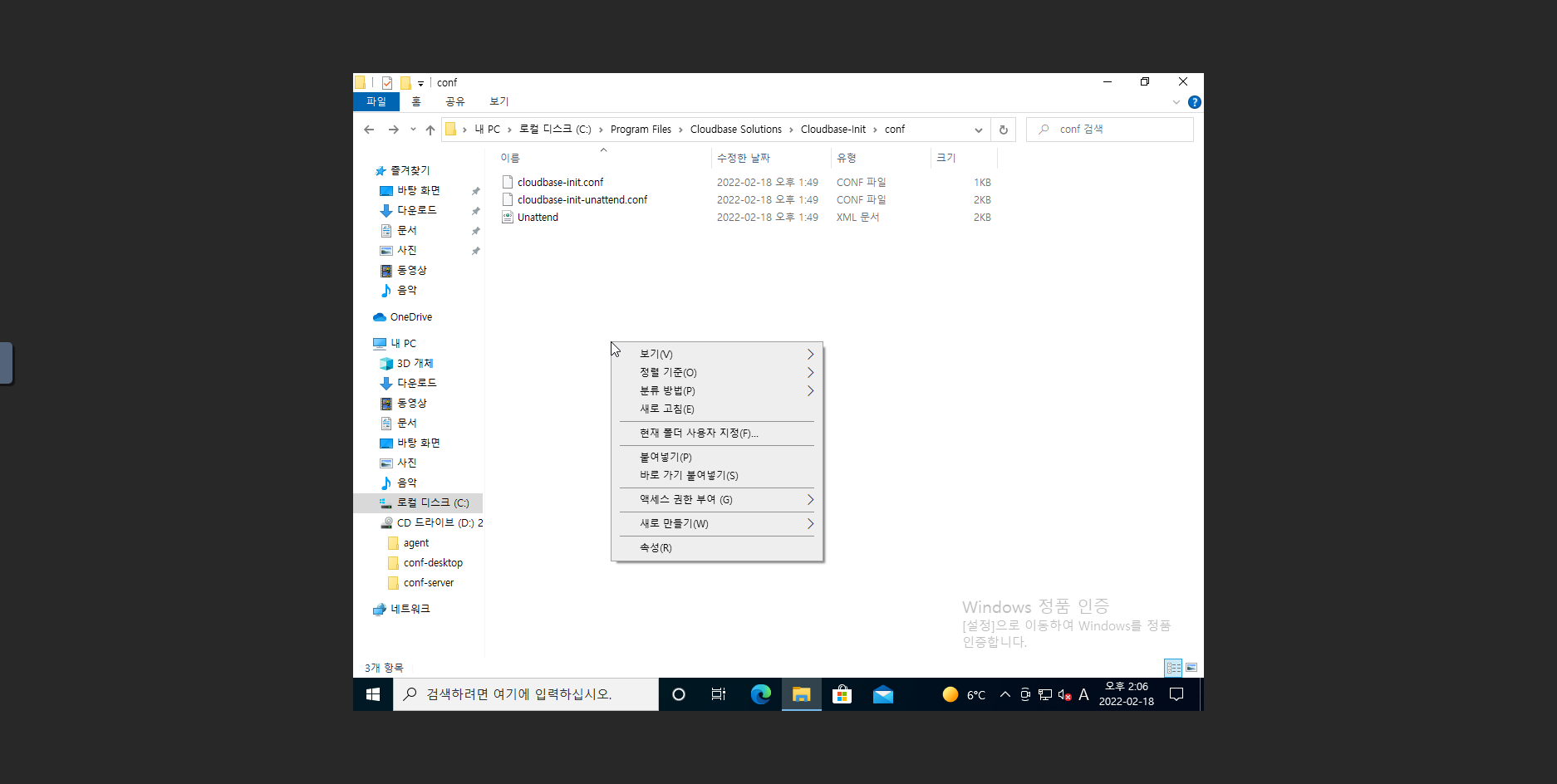 11. D:\conf-server 위치에 있는 cloudbase-init.conf, cloudbase-init-unattend.conf 2개의 파일을