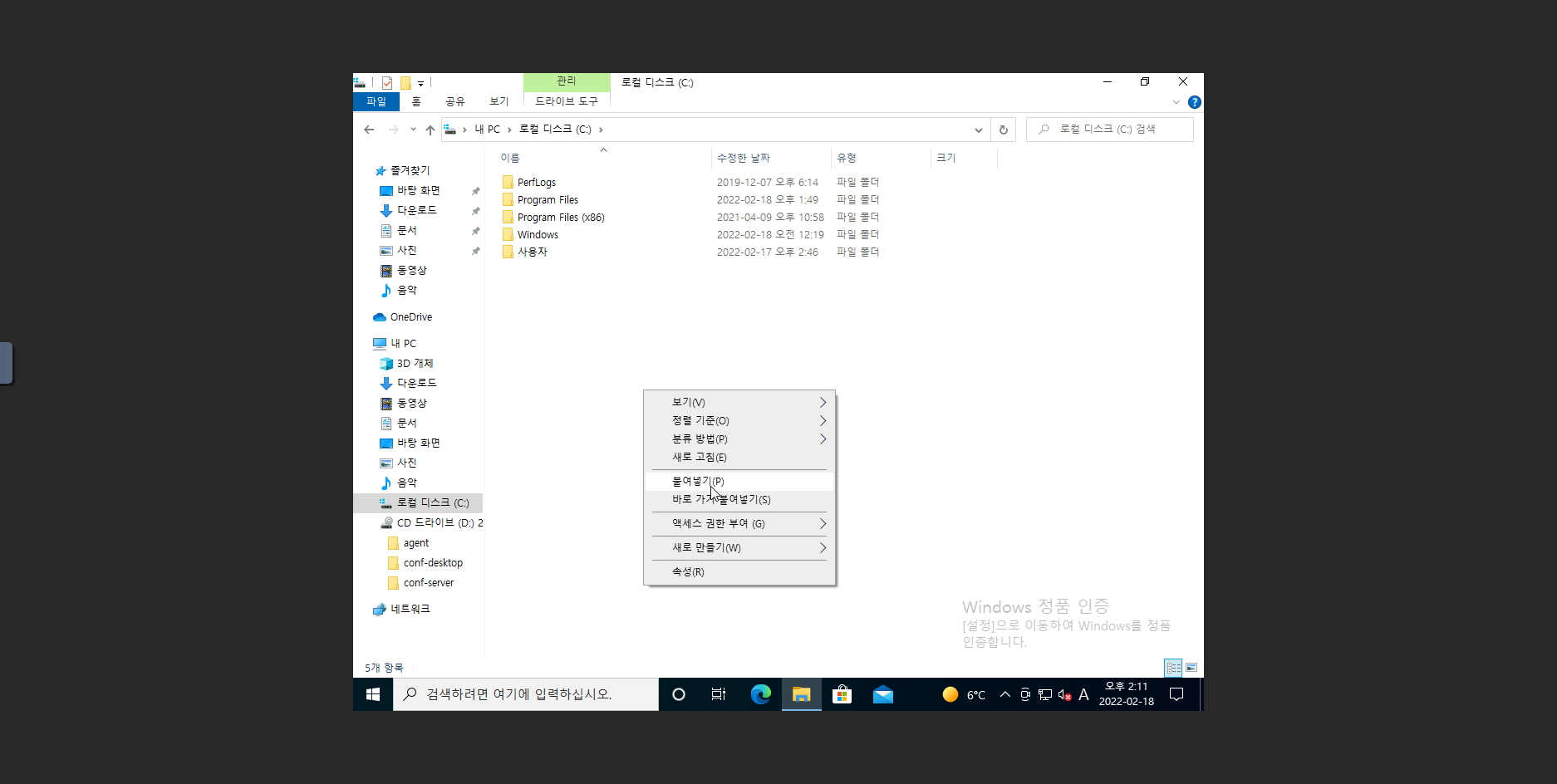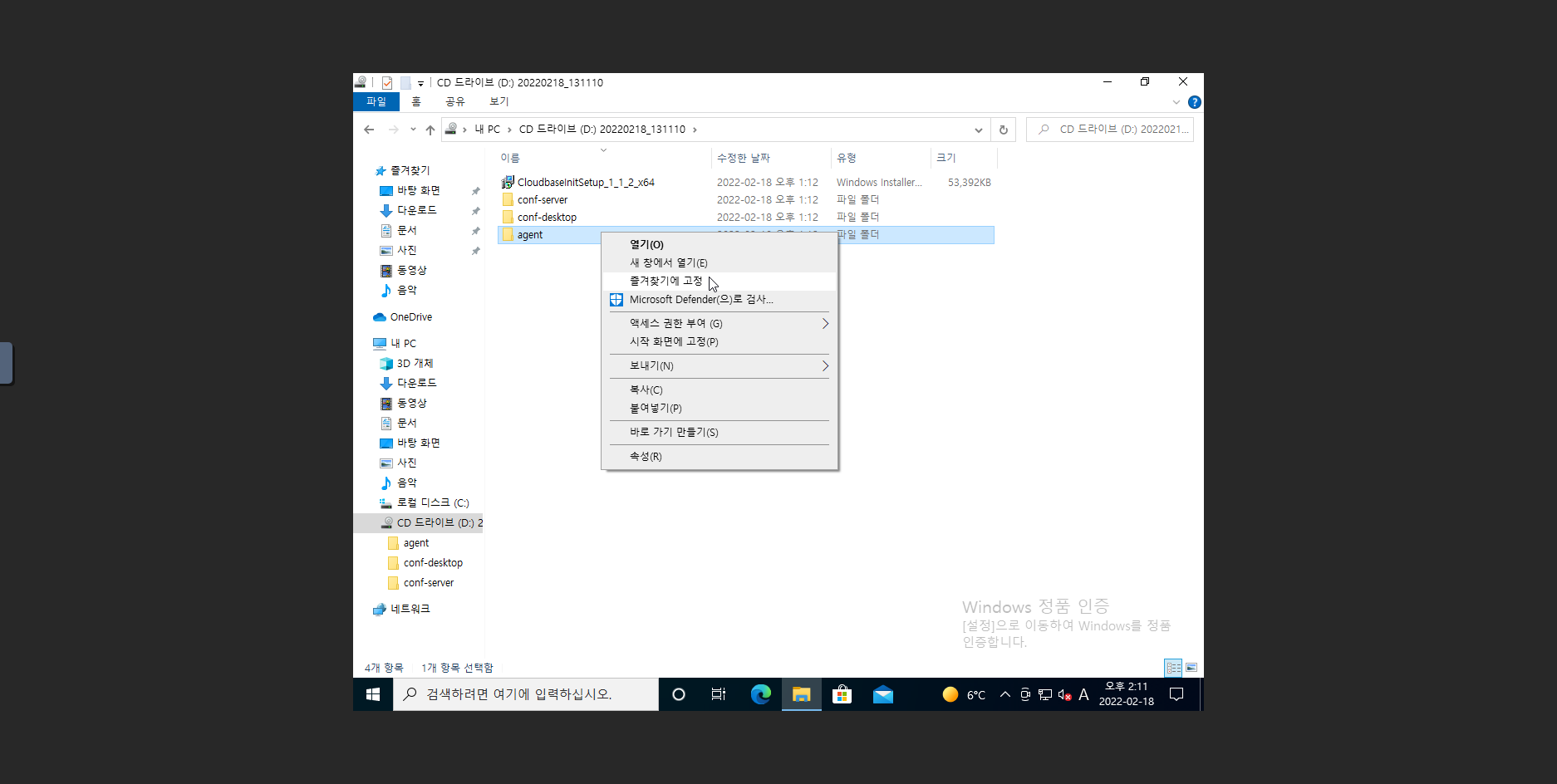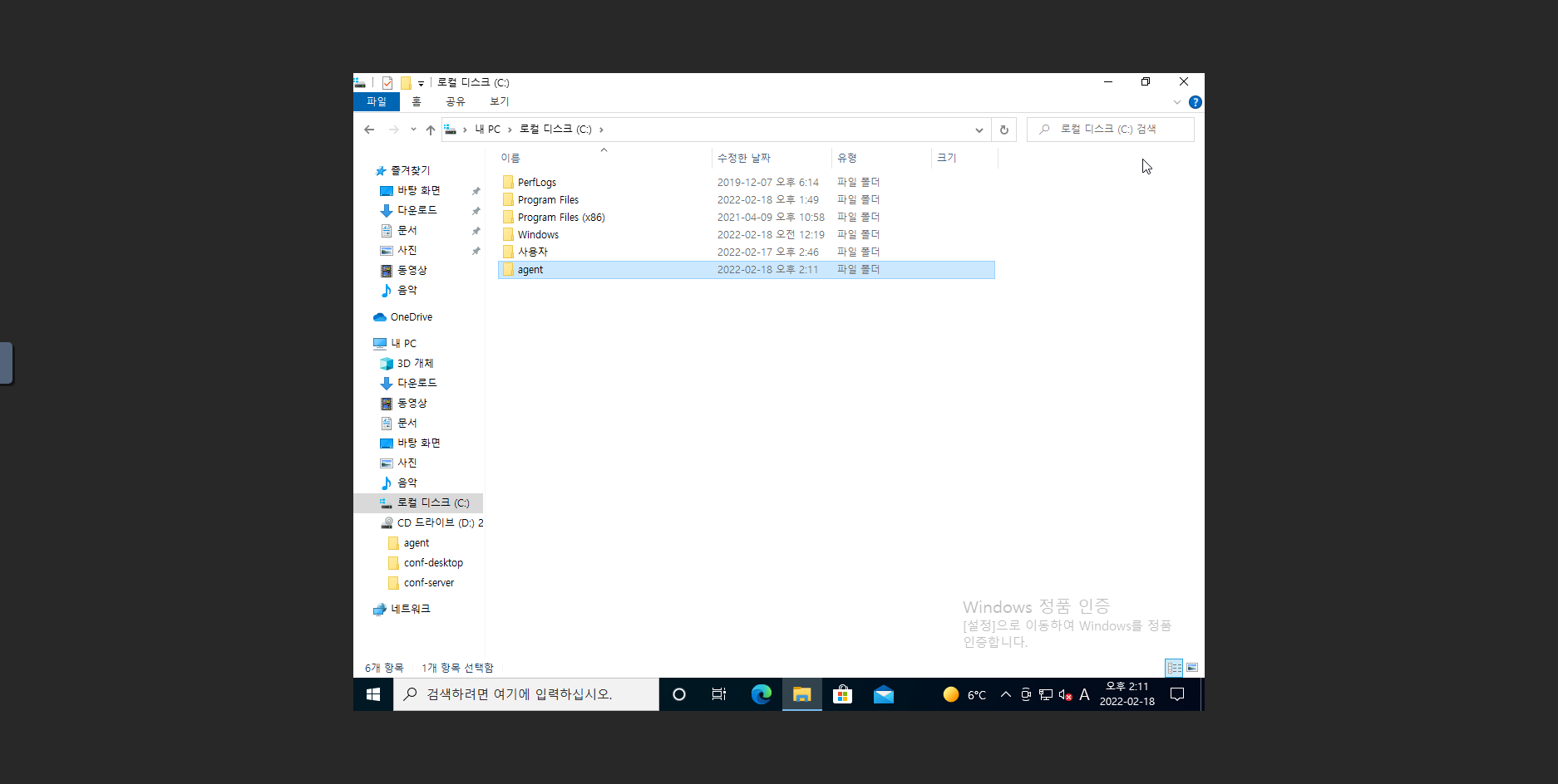 12. D: 에 있는 agent 폴더를 복사하여 C: 에 붙여넣기를 진행 합니다.