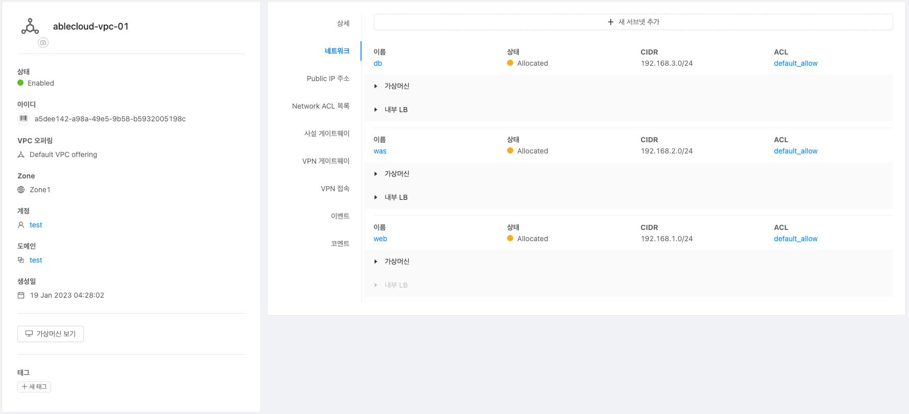 서브넷 추가 방법
