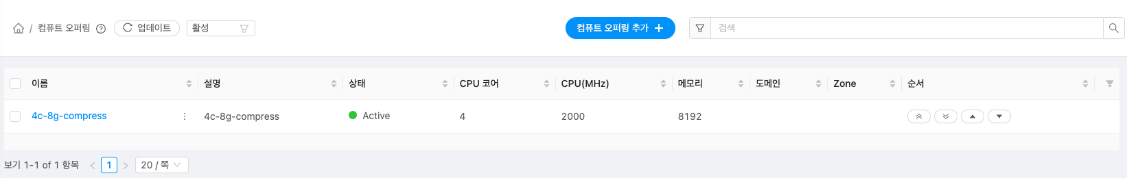 - 생성된 컴퓨트 오퍼링을 확인한다.