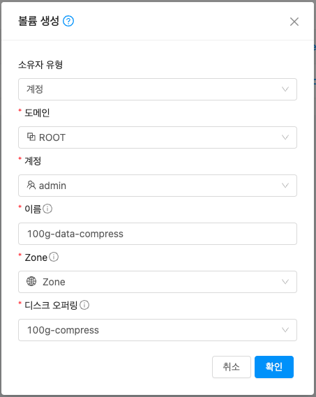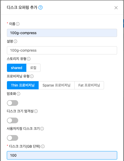 - 확인 버튼을 클릭하여 디스크 오퍼링을 생성한다.