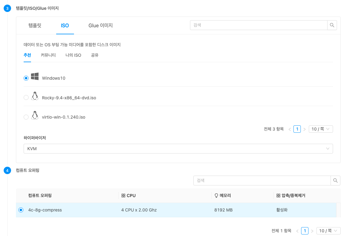 - 3 템플릿/ISO/Glue 이미지 탭에서 ISO 를 선택한다.