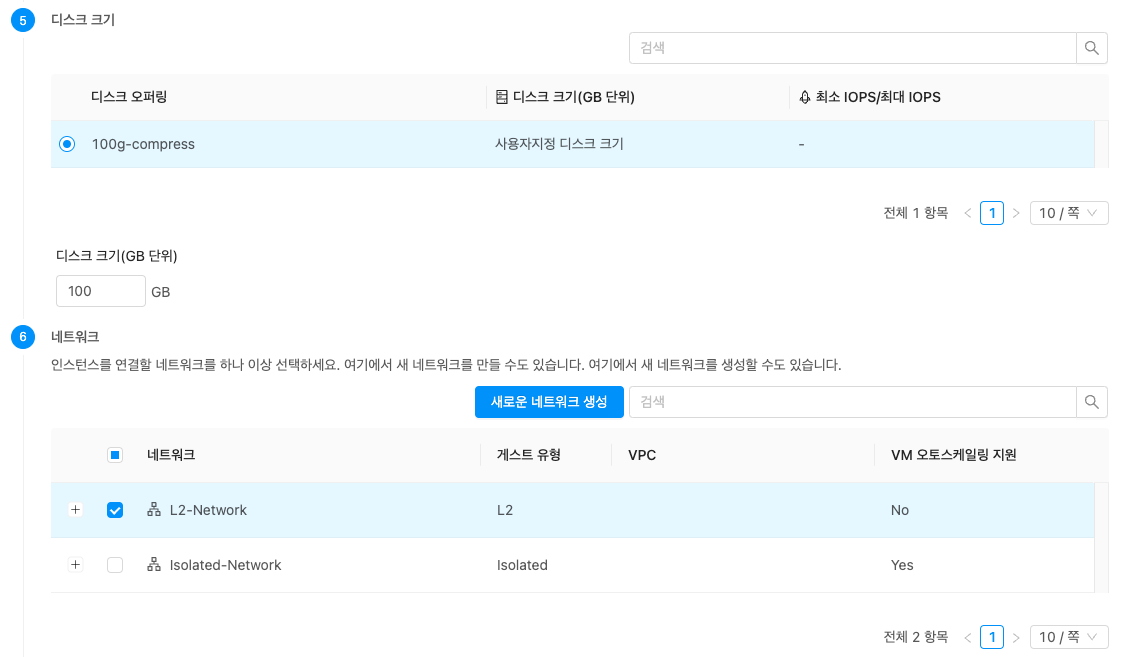 - 5 디스크 크기 항목에서 압축/중복제거가 적용된 디스크 오퍼링을 선택한다.