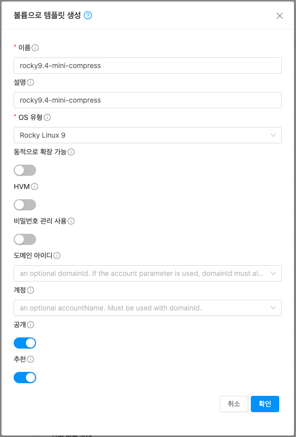 ISO를 이용하여 가상머신 만들면 가상머신의 볼륨에 따라 자동적으로 압축/중복제거가 적용된 템플릿으로 생성됩니다.