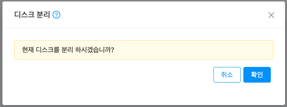 - 확인 버튼을 클릭하여 디스크를 해제 한다.