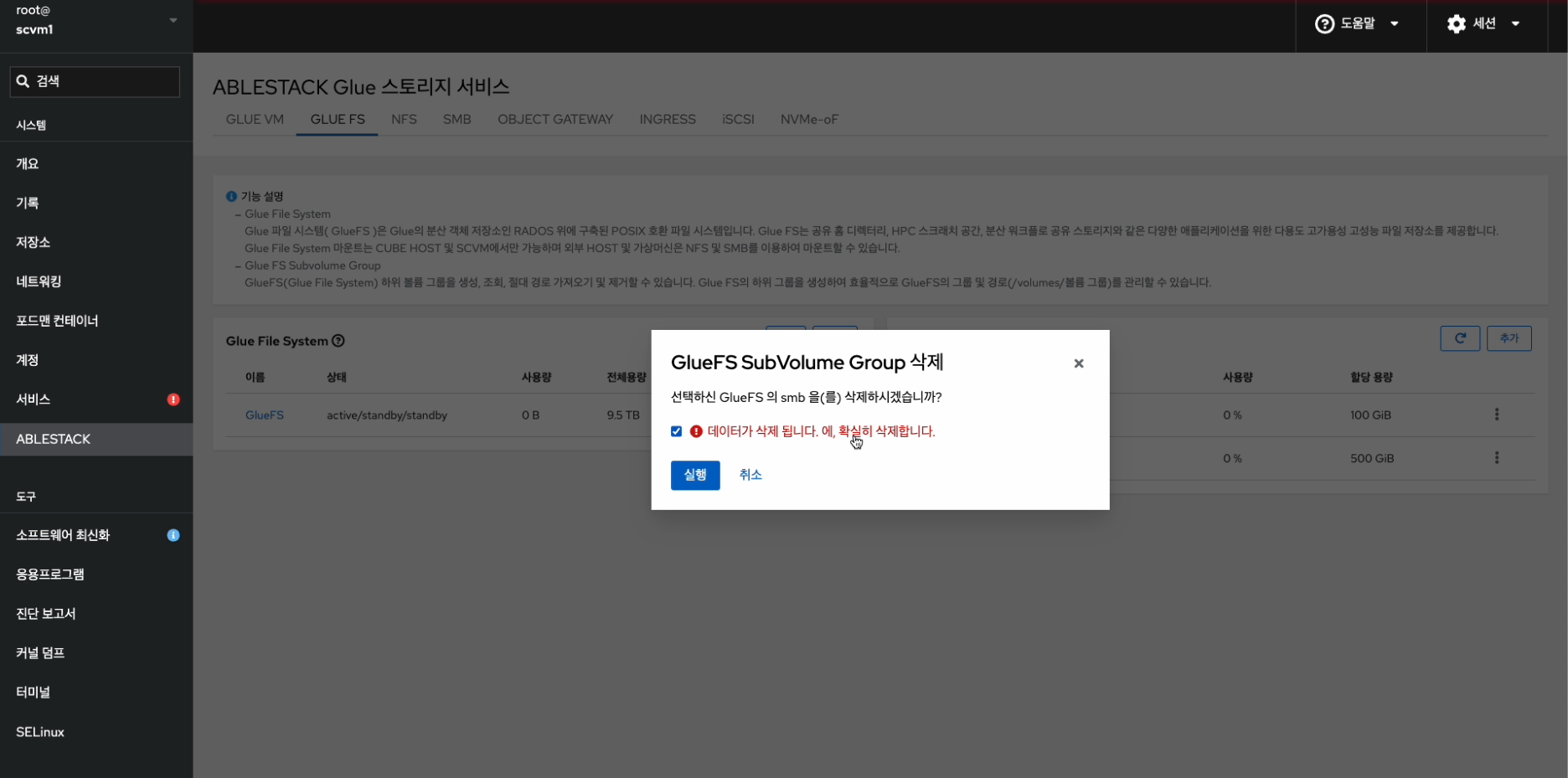 Glue FS Subvolume Group 삭제¶