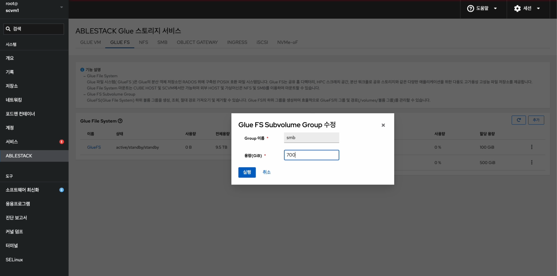 Glue FS Subvolume Group 수정¶