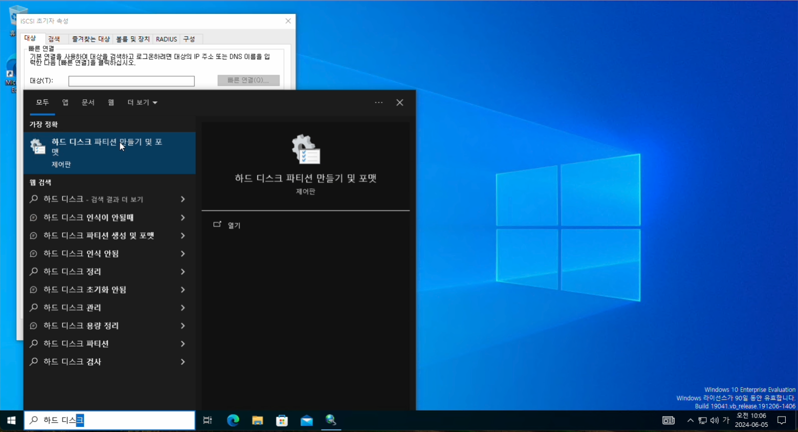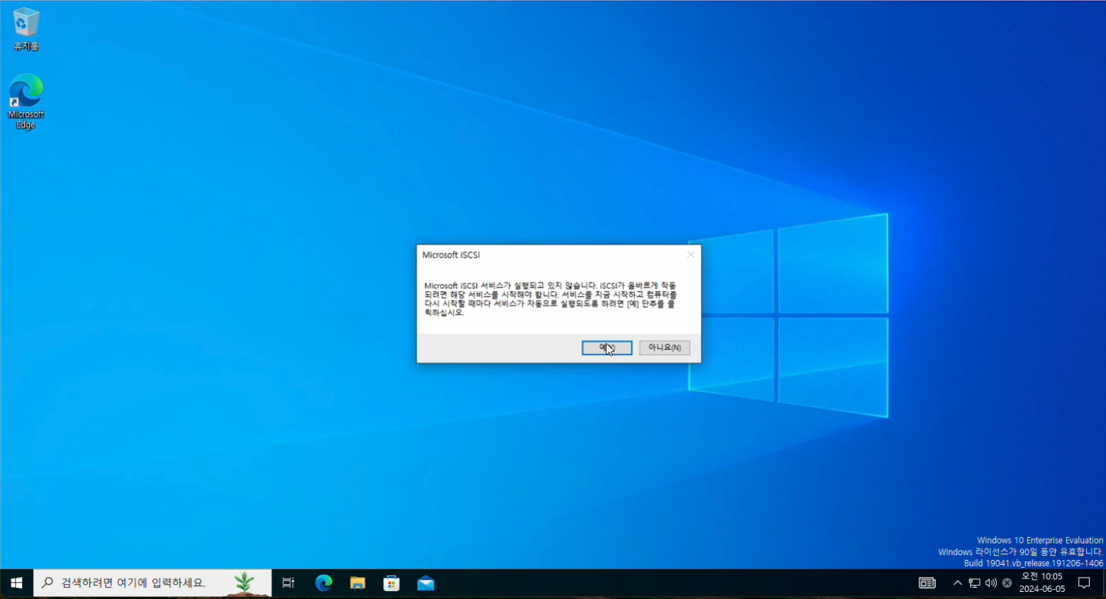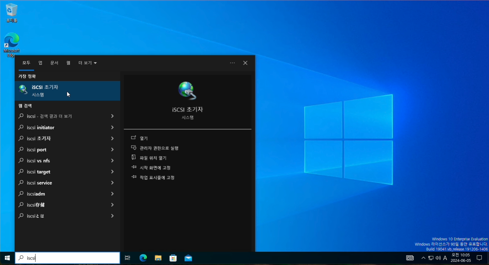 - 왼쪽 하단에 iscsi 초기자 를 입력 합니다.