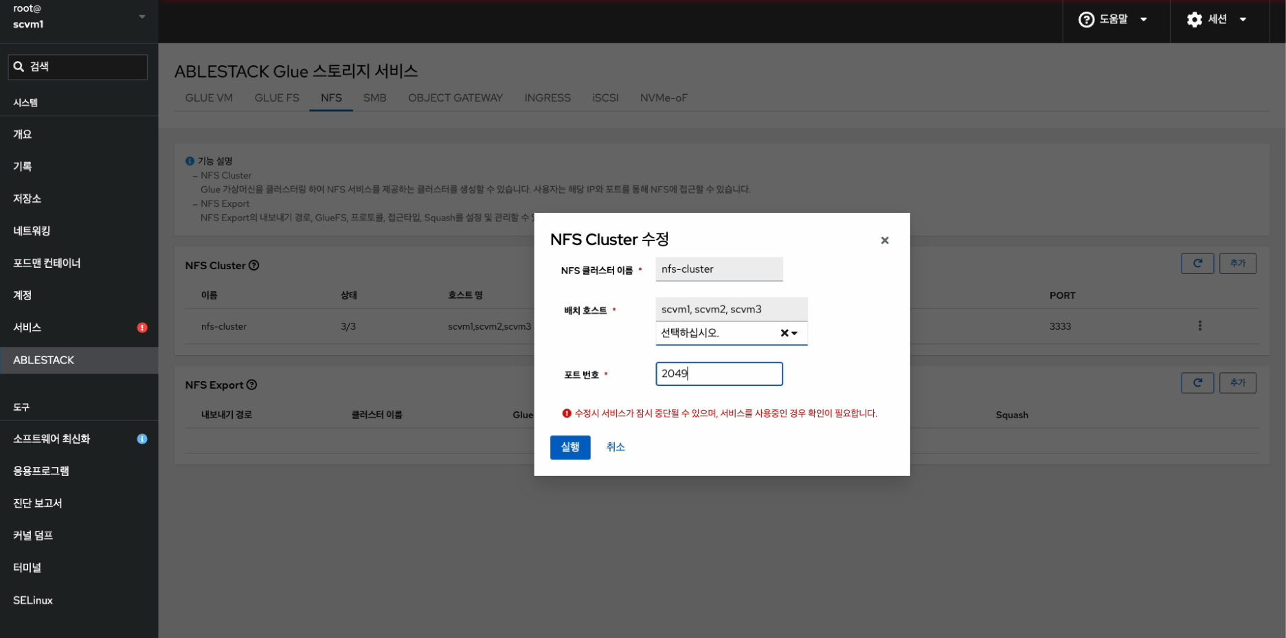 Glue NFS Cluster 수정¶