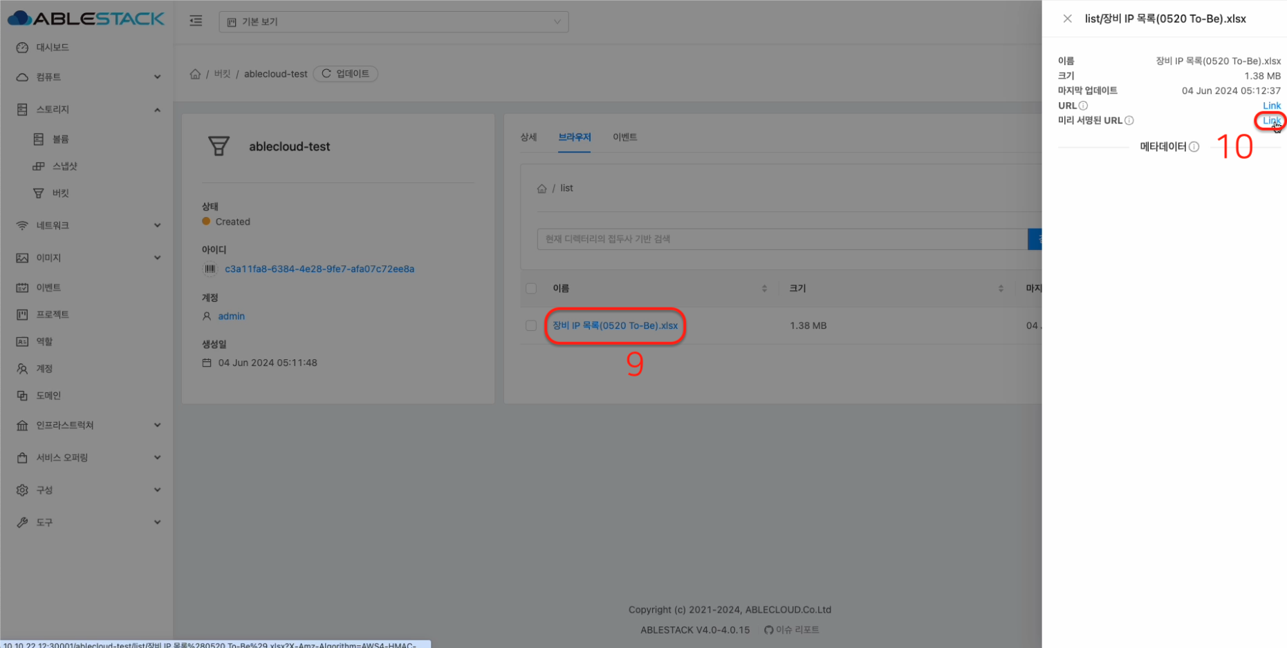 - 미리 서명된 URL 오른쪽에 Link 를 클릭 합니다.