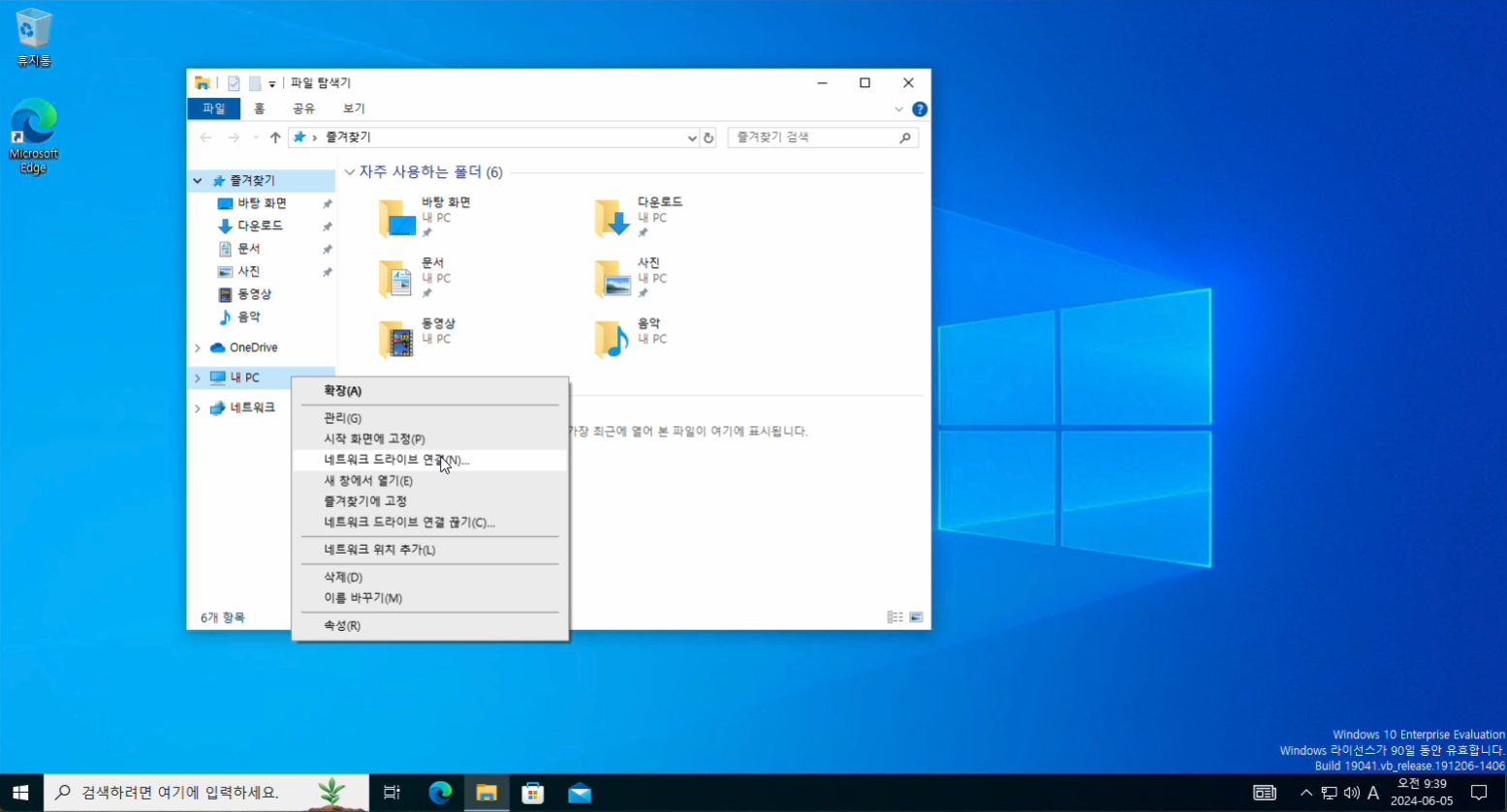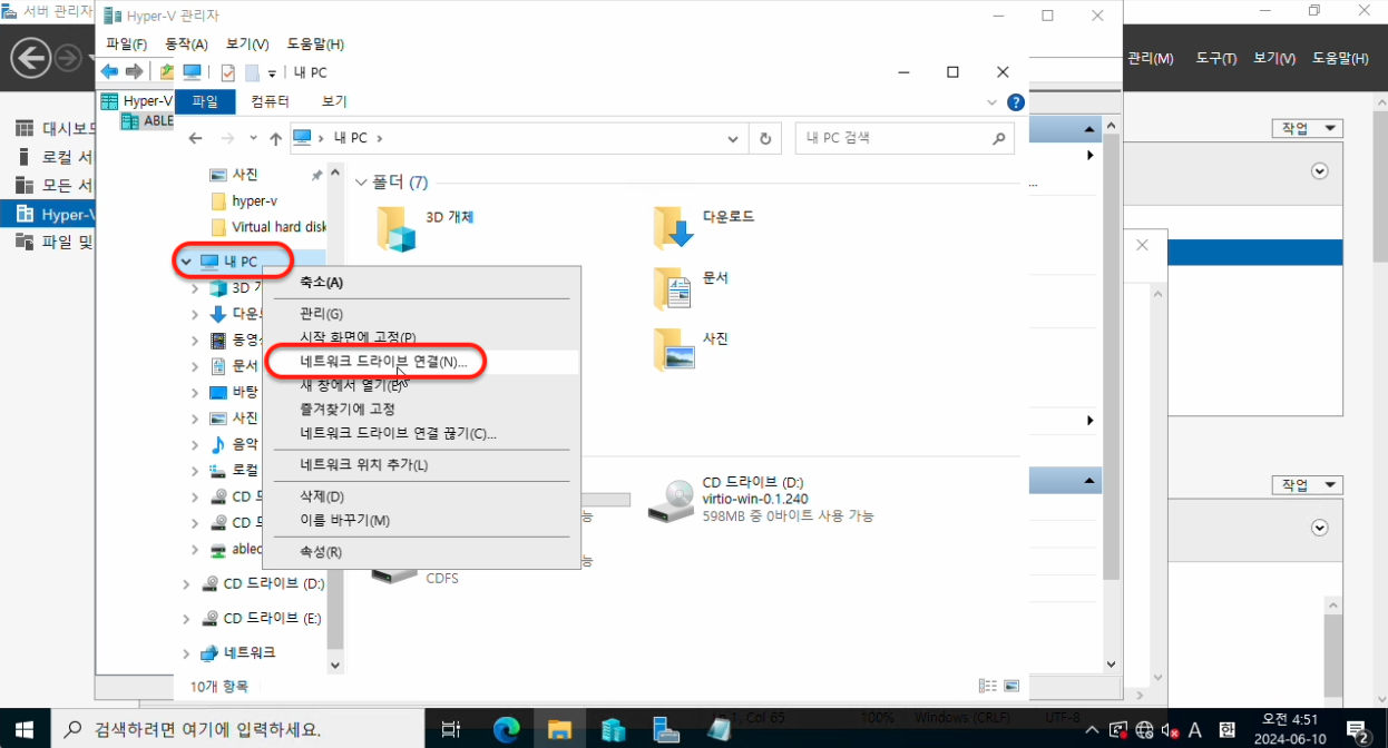 - 내 PC 에서 마우스 오른쪽 클릭 하여 네트워크 드라이브 연결 을 클릭 합니다.