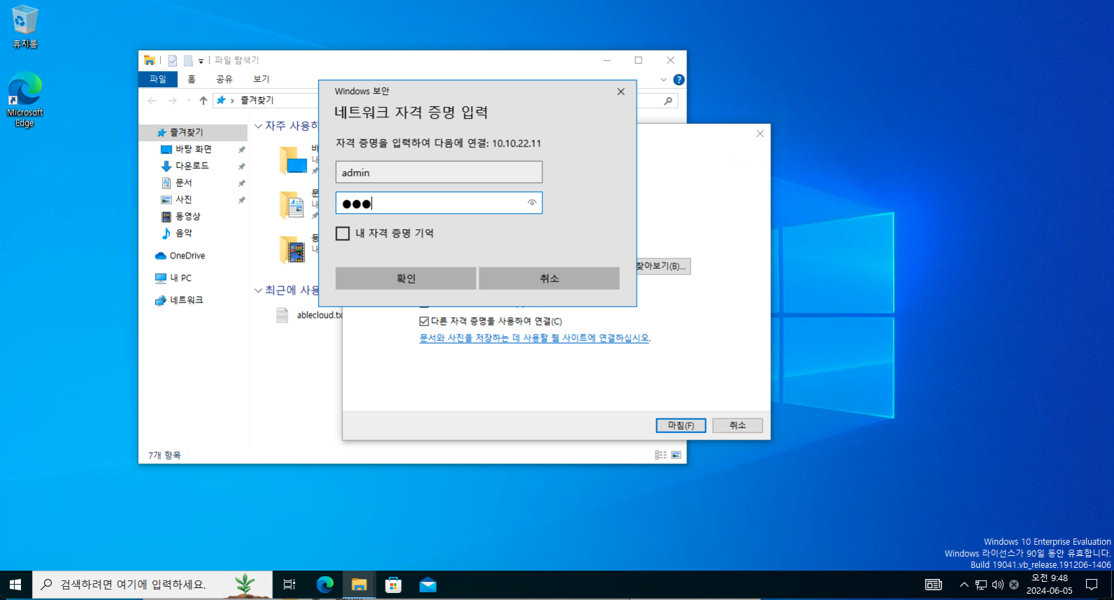 - 다른 자격 증명을 사용하여 연결 을 체크 합니다.