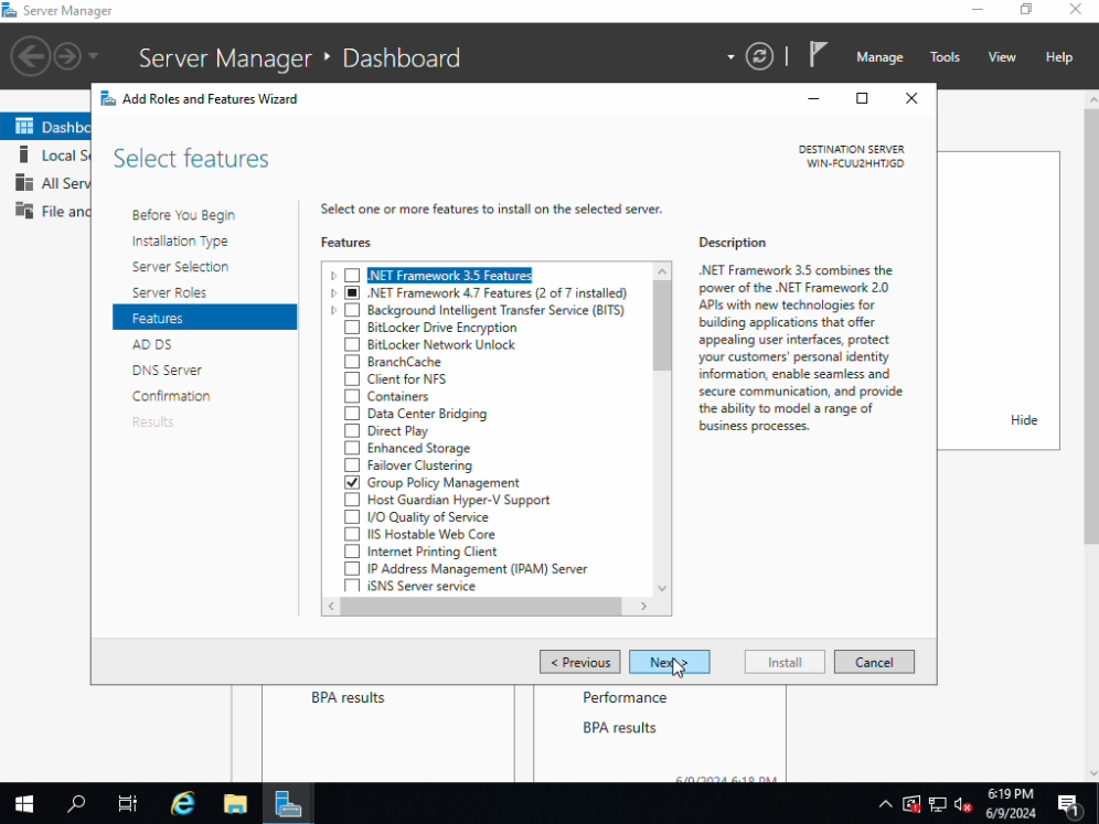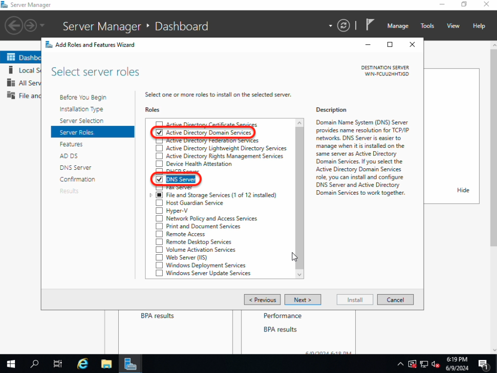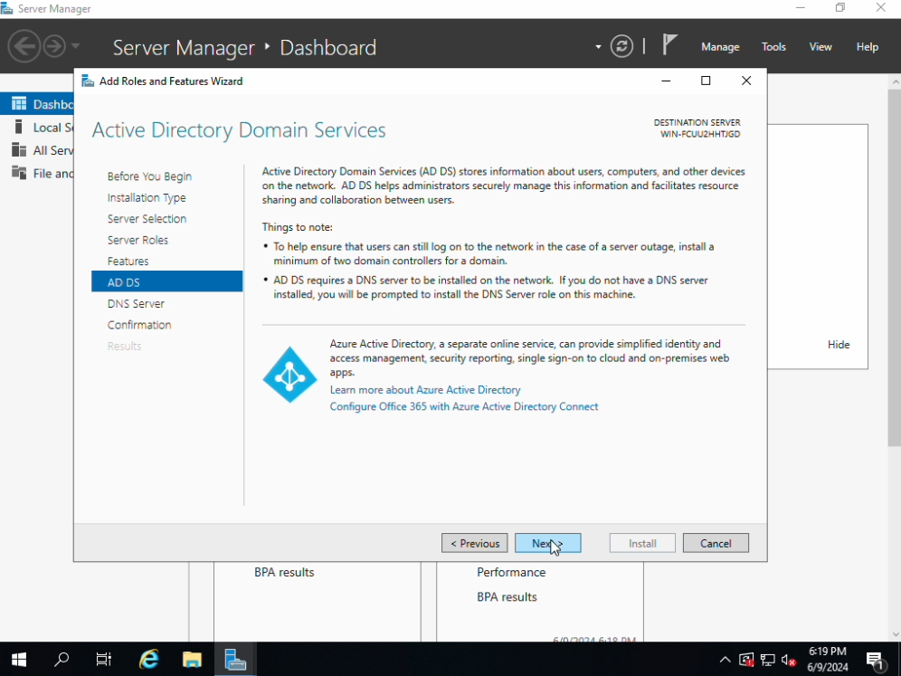 - Active Directory Domain Services 버튼을 체크 합니다.