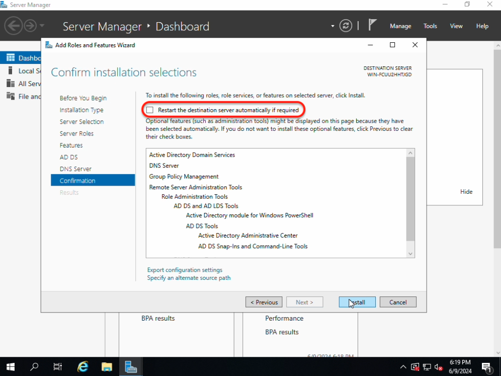 - Restart the destination server automatically if required 버튼을 체크 합니다.