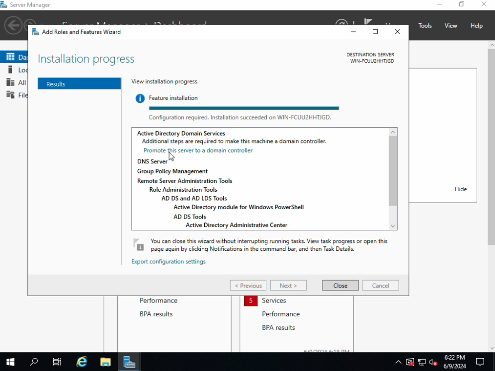 - Promote this server to a domain controller 버튼을 클릭 합니다.