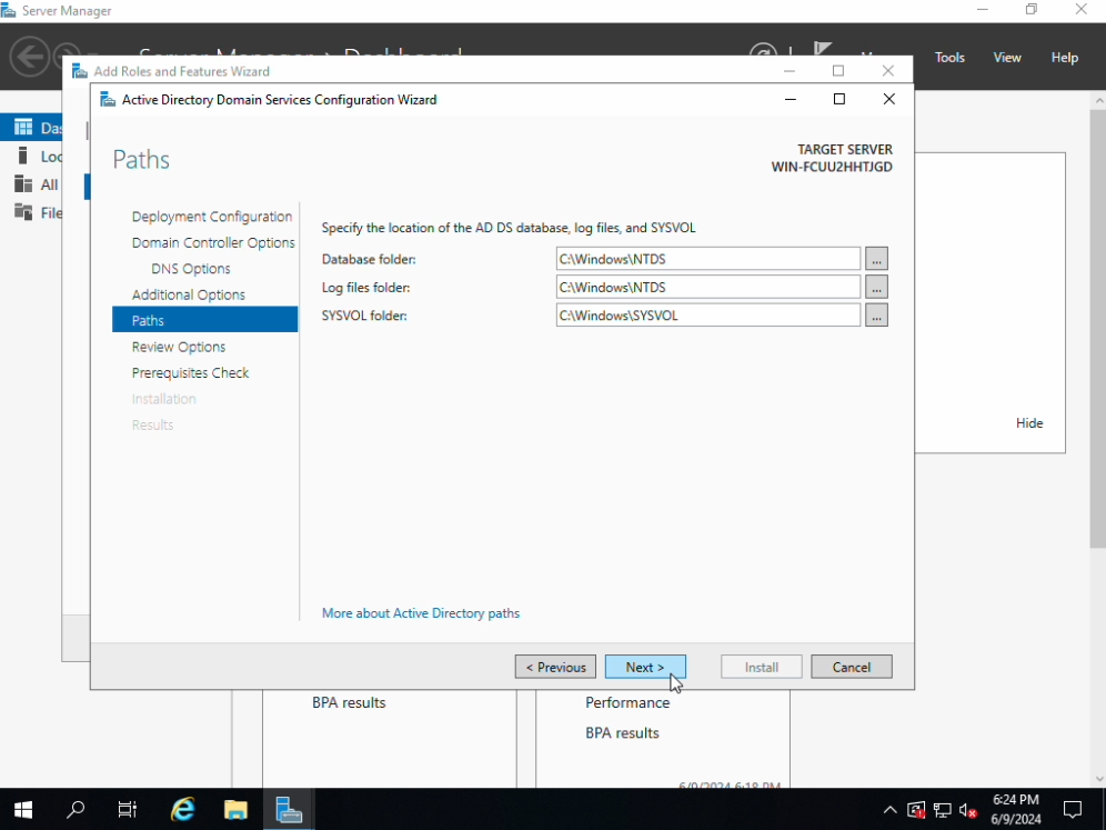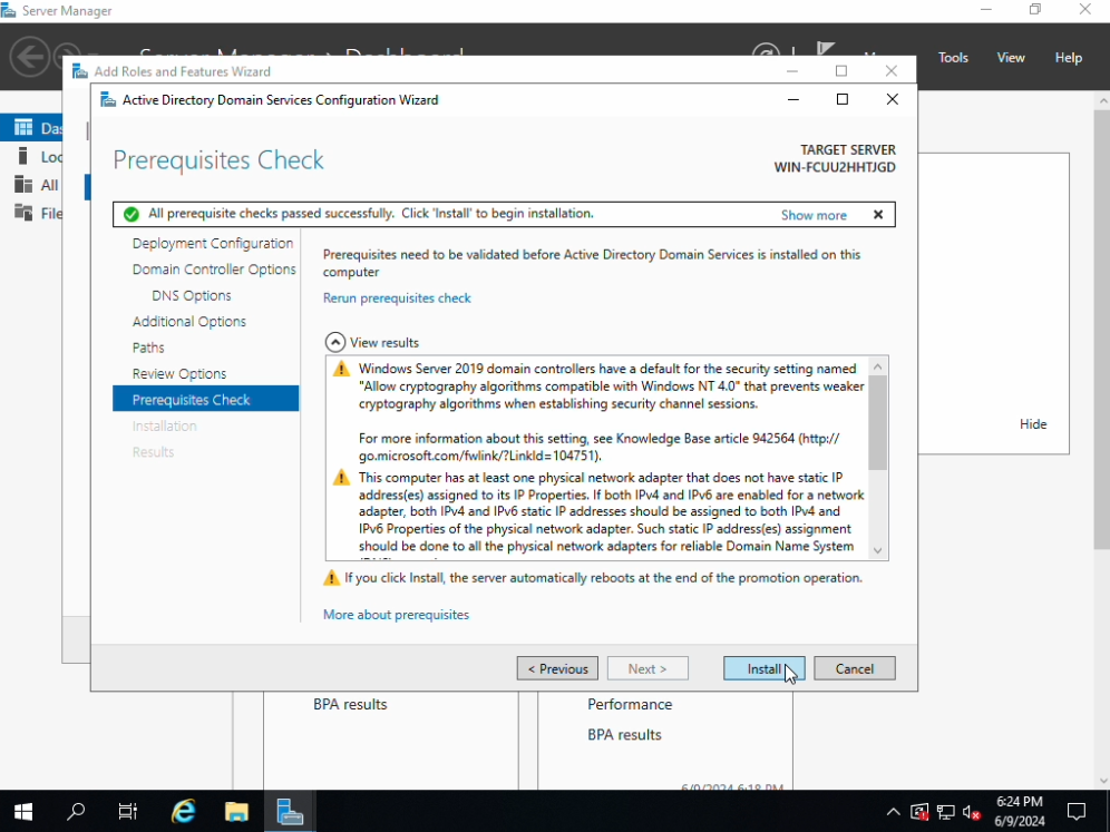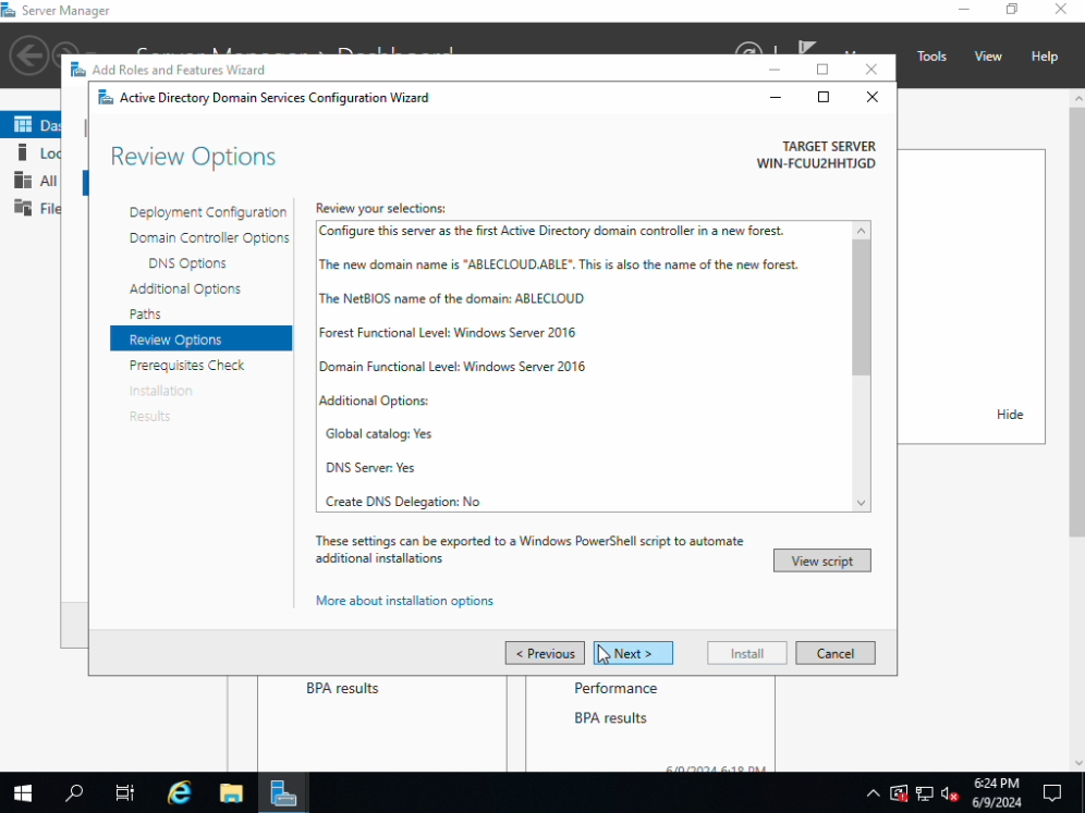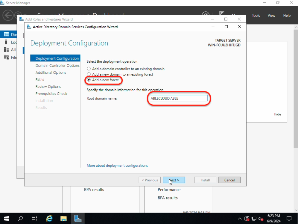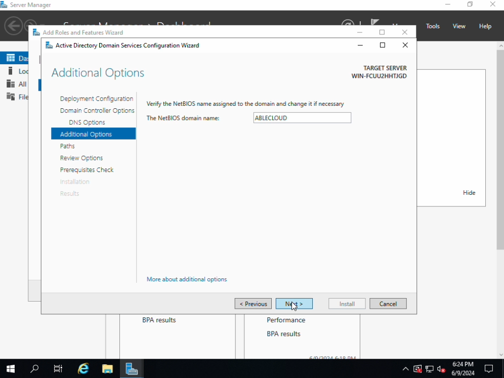 - NetBIOS domain name 은 자동으로 설정 됩니다.