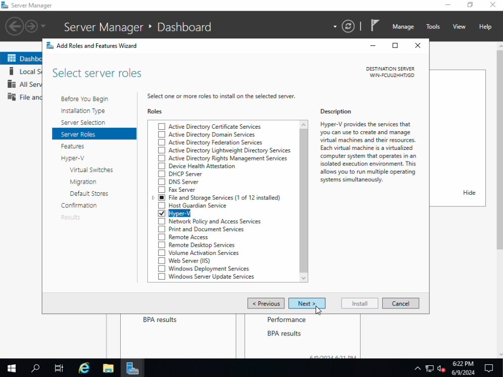 - 왼쪽 상단에 Hyper-V 버튼을 클릭 합니다.