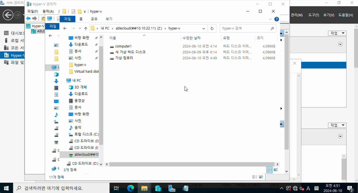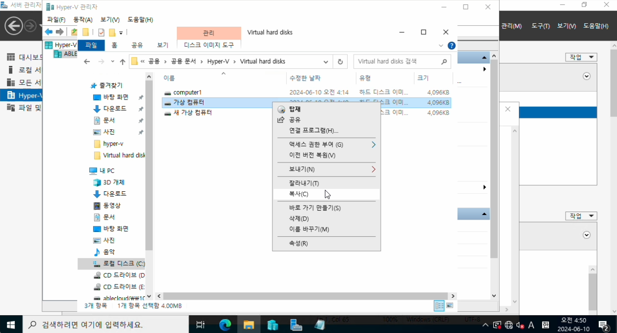 - 사용자의 환경에 맞게 폴더 를 생성하여 해당 가상컴퓨터 디스크 를 복사합니다.