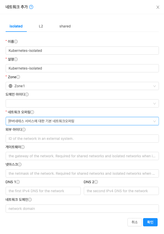 ABLESTACK Mold 에서 Kubernetes Cluster 배포를 하기 위해서는 isolated 네트워크를 사용하여 배포가 되어야 합니다.