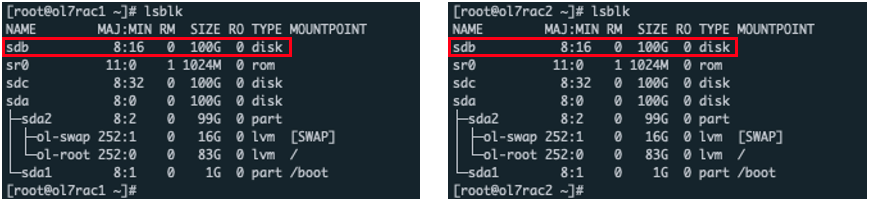 공유 디스크 세팅 확인 ( 노드 : 전체 / 계정 : root )