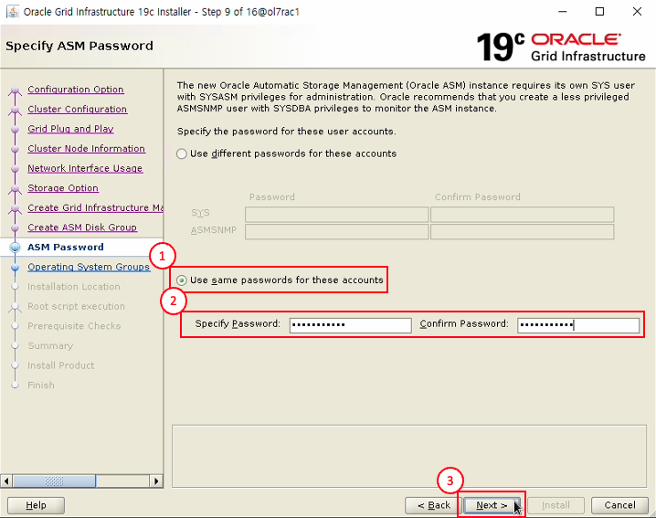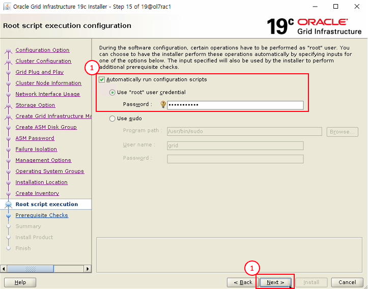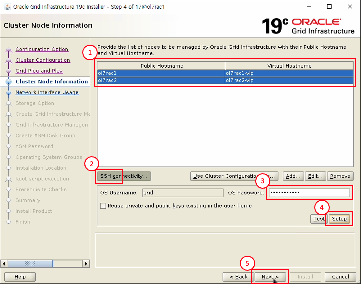 - OS Password : grid 계정 비밀번호 입력