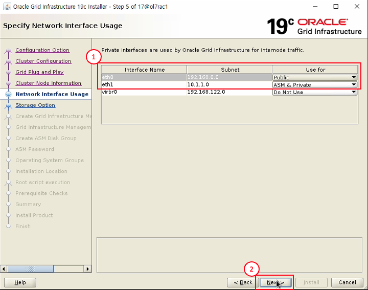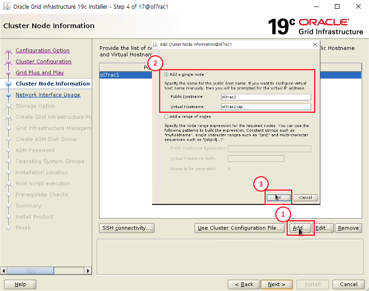 - Virtual Hostname : ol7rac2-vip 입력