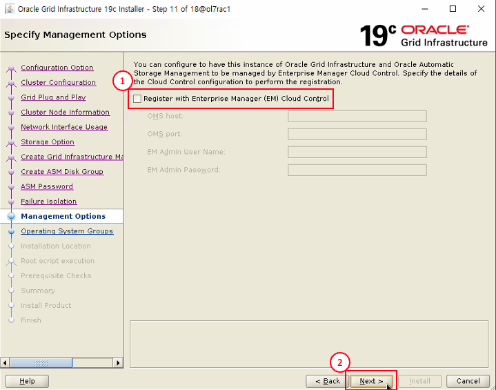 - Cluster Name : ol7rac-cluster 입력