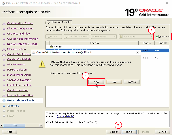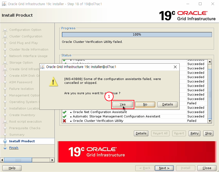 - Yes 버튼 클릭 (SCAN 구성 관련 에러 무시하고 진행)