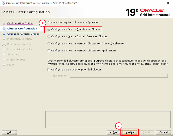 - Configure an Oracle Standalone Cluster 선택