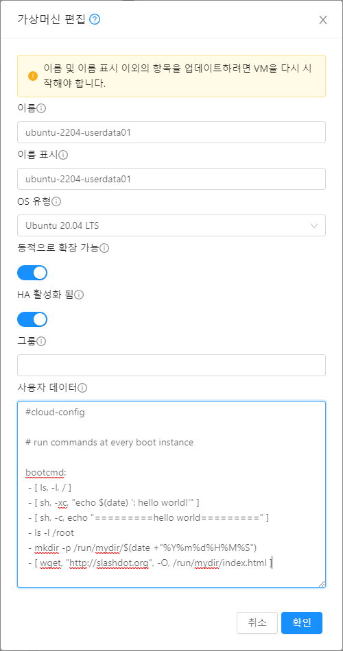 사용자 데이터를 통해 가상머신 구성을 자동화 하고자 한다면 cloud-init에 대한 사용 방법을 좀 더 자세히 알아야 합니다.